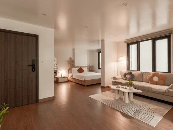 Au Co, Tây Hồ(テイホー区), Ha NoiDoho Home(ドーホー・ホーム)|Au Co(アウコー)通り・タイホーエリア Doho Homeは、ハノイ・タイホー区の主要幹線 Au Co通り に位置する、外国人向けのアパートメントです。西湖(West Lake)エリアに近く、開放感のある立地と生活利便性のバランスが取れた物件として知られています。 建物は比較的新しく、外観・共用部ともにシンプルで清潔感のあるデザイン。お部屋はスタジオタイプが中心で、単身者やカップルに適しています。室内はナチュラルテイストでまとめられ、長期滞在でも疲れにくい設計です。 この物件は「プライベートバルコニーがある」のが最大の特徴です。 立地面では、空港方面へのアクセスが良好なのが大きな特徴。ノイバイ国際空港へは車で約20〜25分ほどで、出張の多い駐在員の方には実用的です。周辺にはローカル食堂、カフェ、ミニマートが点在し、少し足を伸ばせば日本食レストランや輸入食材店も利用可能。タイホーらしい「ローカル感と外国人向け環境の中間」に位置する、ちょうど良い生活圏です。 こんな方に向いています...