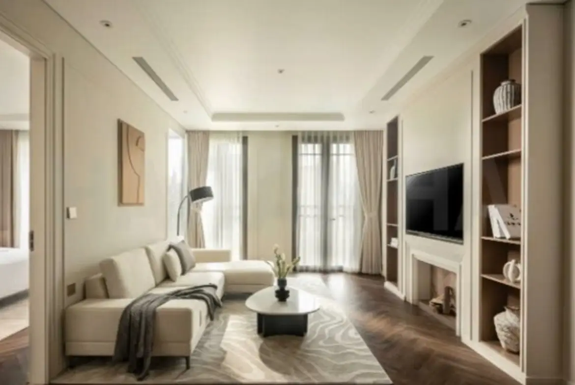 モダンな設備 家具付きのモダンな内装で、エアコン、冷蔵庫、洗濯機、Wi-Fi など基本的な生活設備が整っていることが多いです。