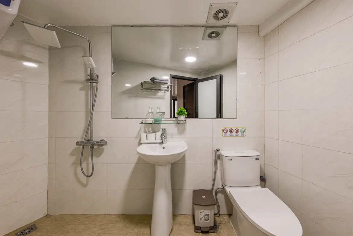 水回りもシンプルで清潔感重視。シャワー水圧は安定していて、給湯もクセが少なく、ストレスは感じにくいタイプ。