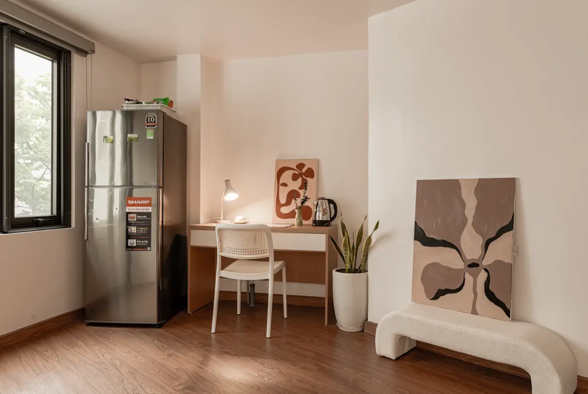 周辺環境は、いわゆる“西湖ど真ん中”よりもローカル色がやや強め。その分、家賃は抑えめで、ローカル食堂、カフェ、コンビニが徒歩圏に揃います。日本食や外国人向け店は、Xuan DieuやAu Co方面へ車・バイクで数分。
