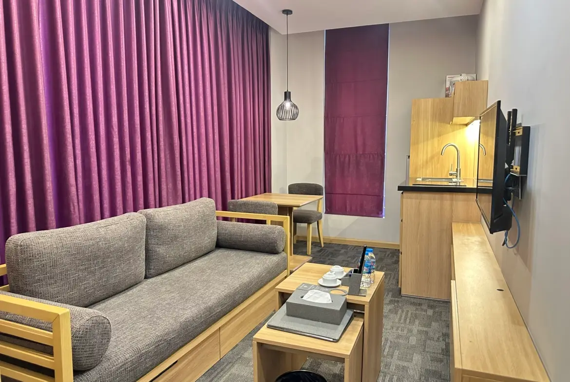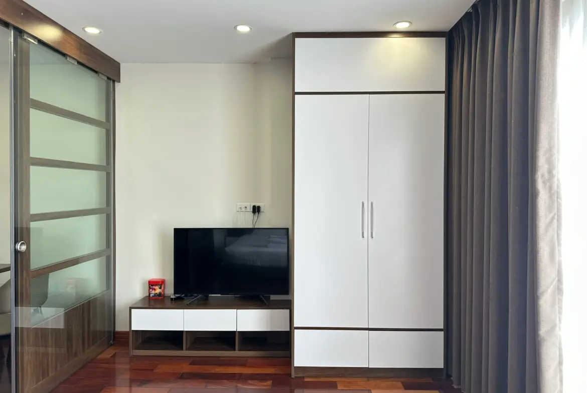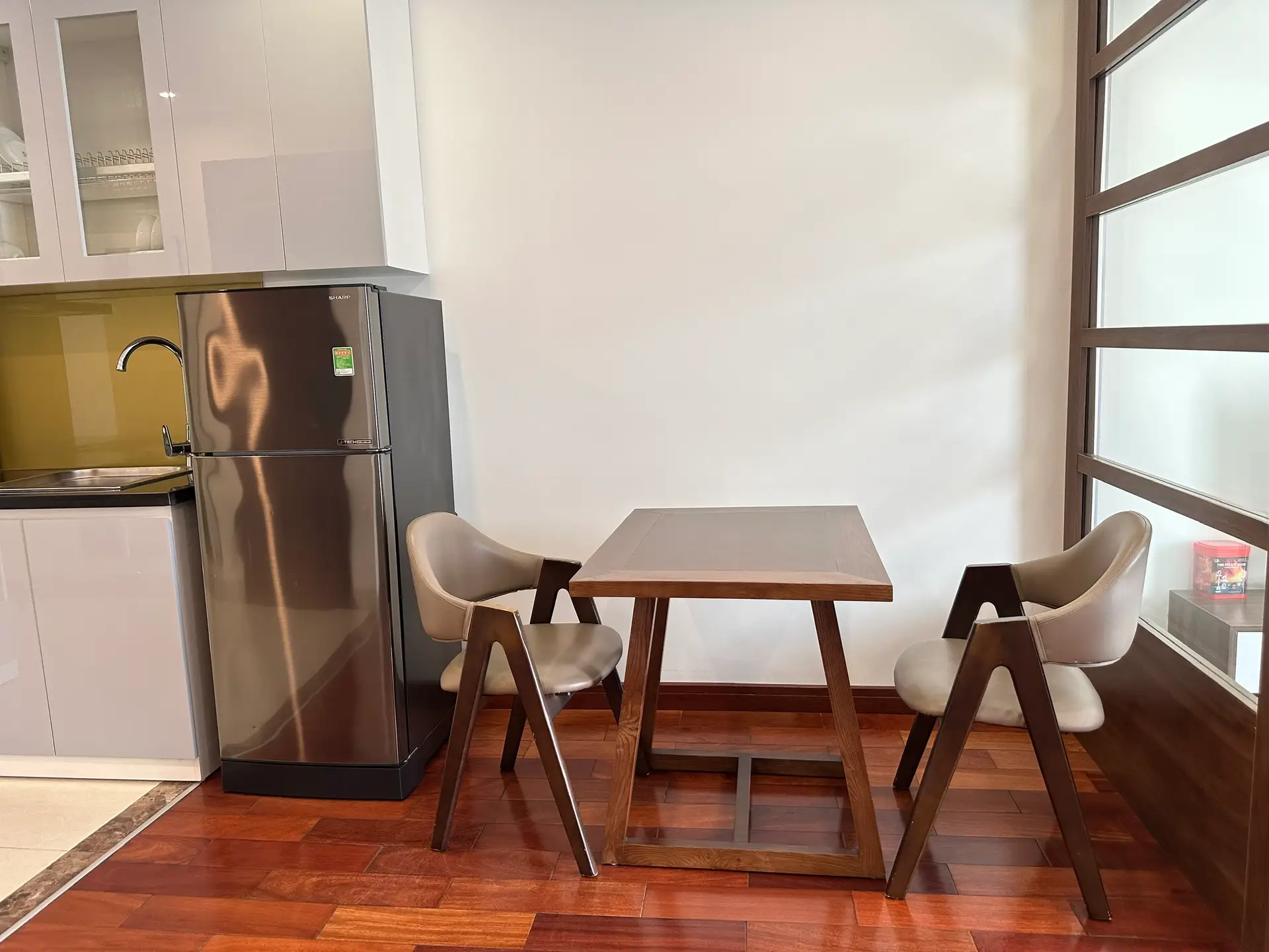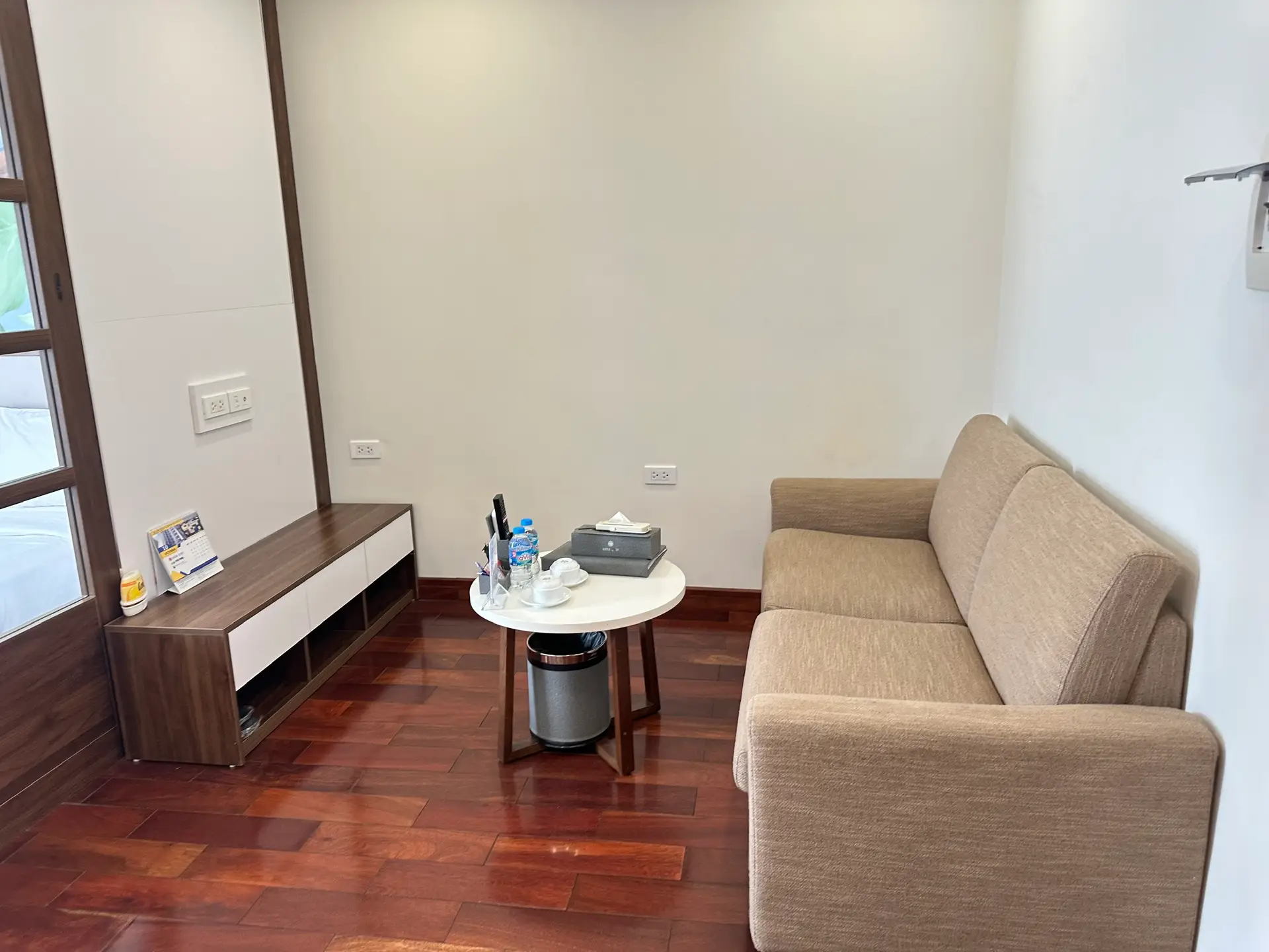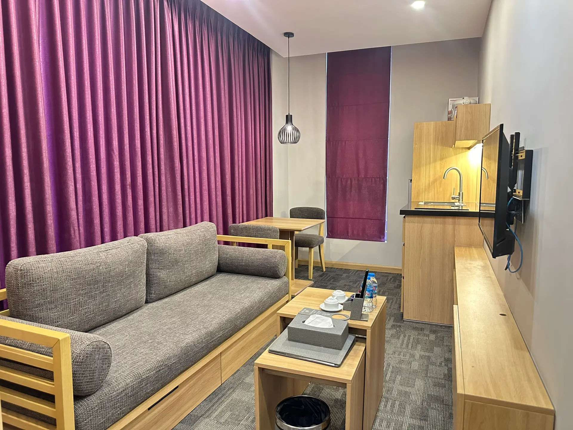 お部屋内には生活に必要な家電設備、食器類などの備品を取り揃えています。すべてのお部屋に表通りに大きな窓があり、明るい光が差し込みます。PHAN KE BINH通りに面しており、送迎者やタクシーをご利用の場合で大変便利です。