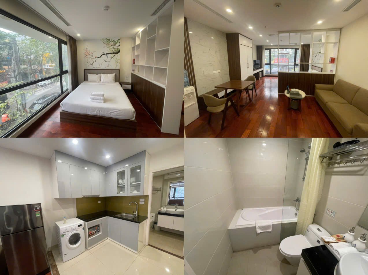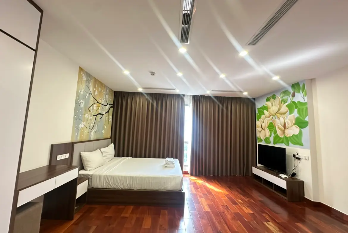お部屋内には生活に必要な家電設備、食器類などの備品を取り揃えています。すべてのお部屋に表通りに大きな窓があり、明るい光が差し込みます。PHAN KE BINH通りに面しており、送迎者やタクシーをご利用の場合で大変便利です。