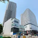 建物の一階にカフェチェーン、スーパー、レストランなど展開しており、近年再開発が進んでいるエリアです。