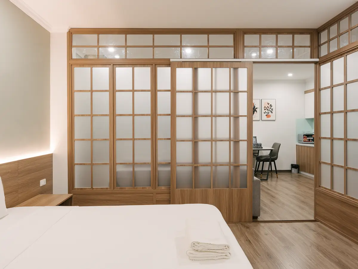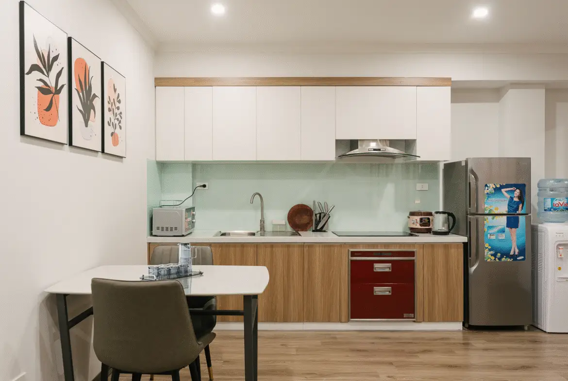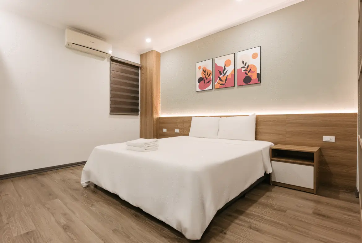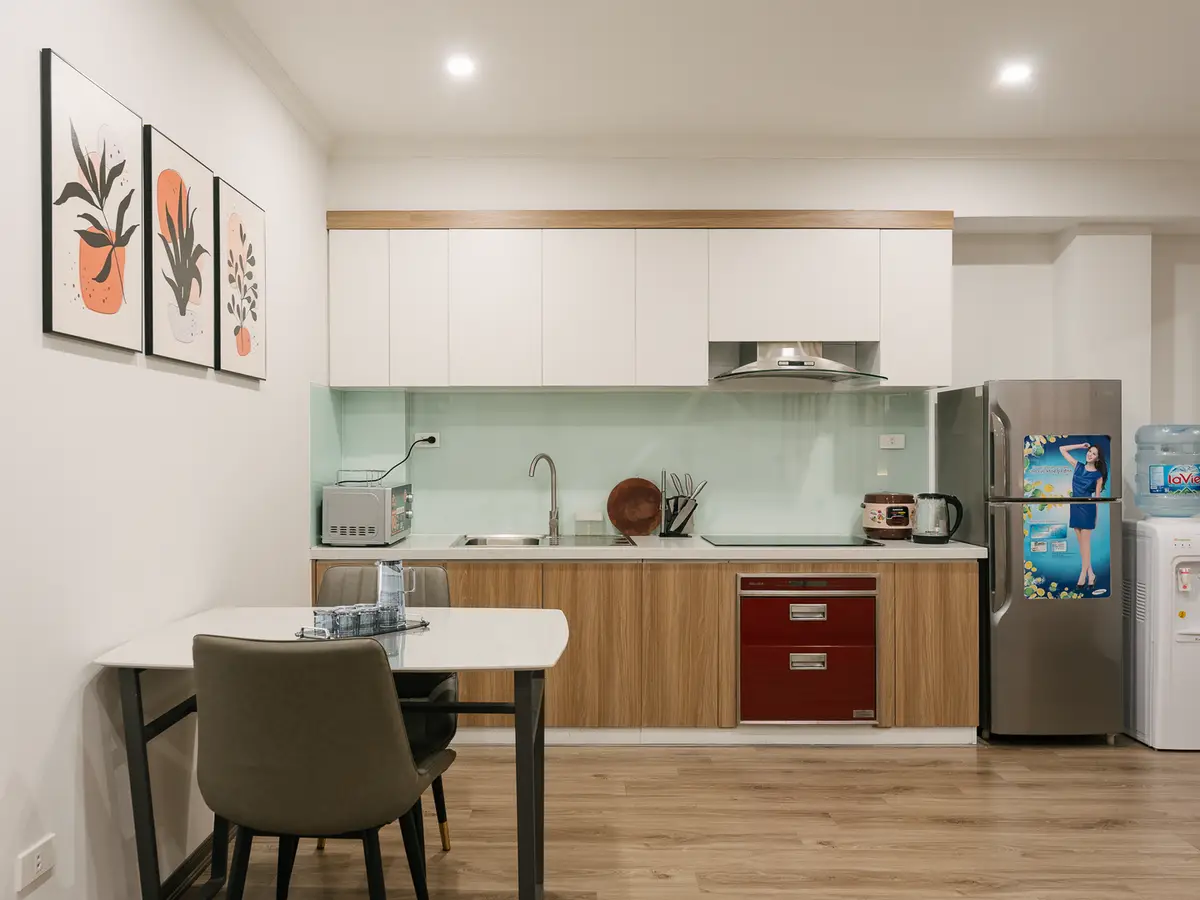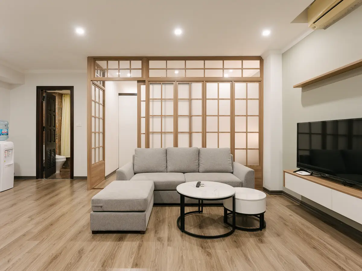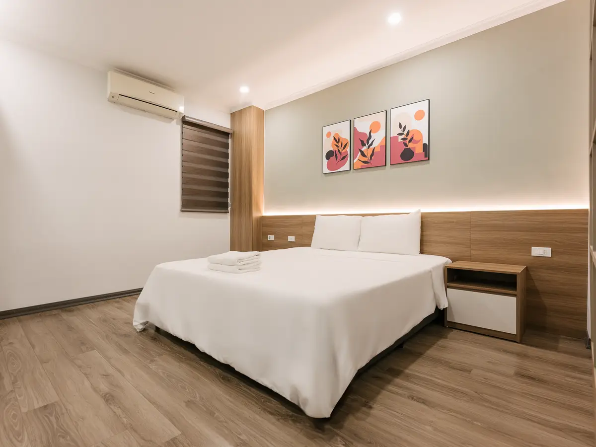 新しくて清潔感のあるサービスアパートです。Kim Ma通り沿いの便利なロケーションにありながら、静かで落ち着いた生活空間を確保しているのが特徴です。