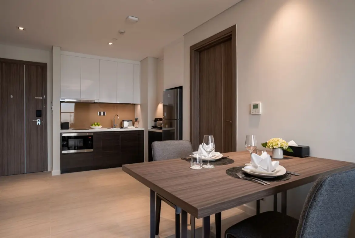 エレガントな家具付きのサービスアパートメント全257室をご用意しているほか、レストランやレジデンツ・ラウンジ、フィットネスセンター、通年営業のプールなど、ご宿泊のお客様専用の施設も備えています.
