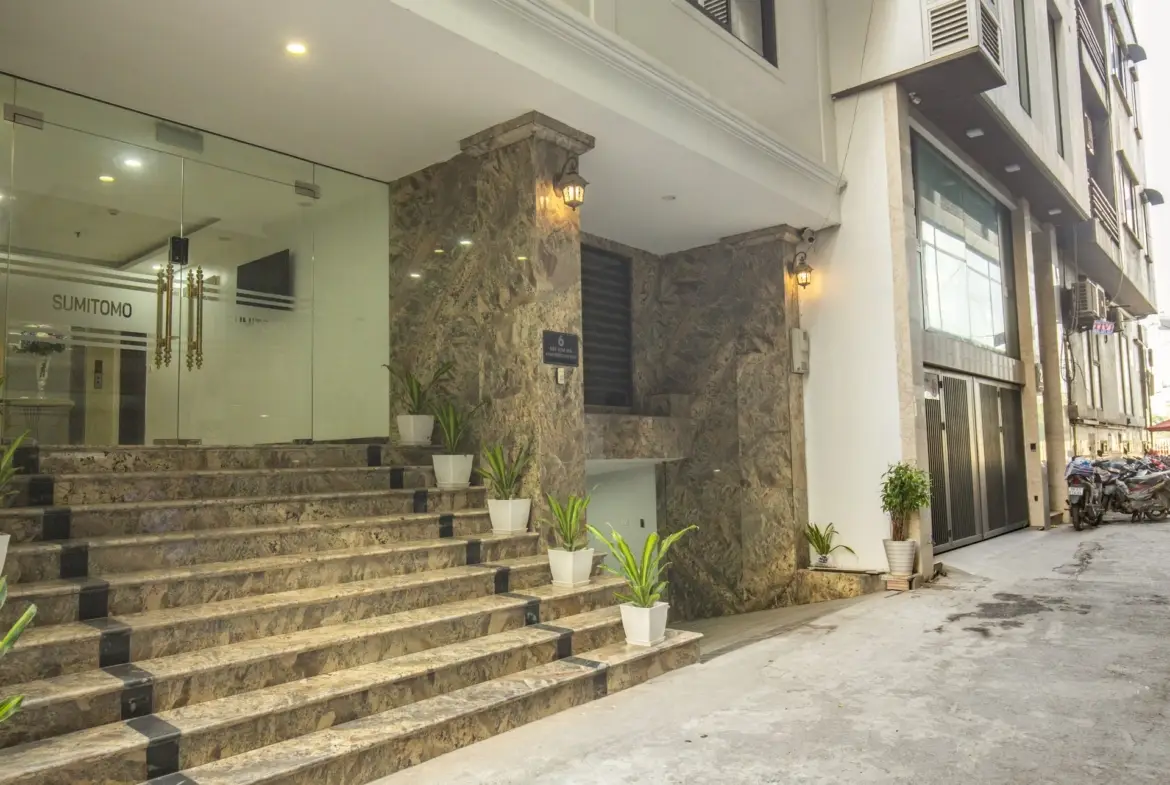 Kim Ma通りから少し奥に入った路地裏の静かな立地。通り沿いの騒音を避けつつ、徒歩圏で食事・買い物・出勤の利便性を確保しています。