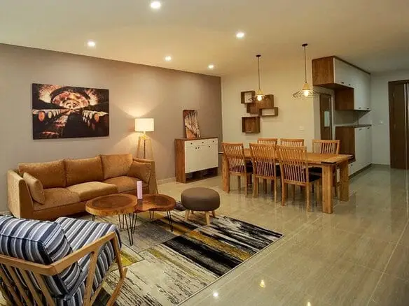 おすすめの高層3LDK賃貸マンションです。アパートは美しくデザインされ、自然で高価な木材を使用しています。