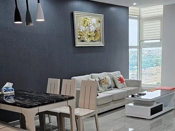アパートは自然光がたくさん入るように設計されており、リラックスできる小さなテーブルと椅子のあるとても素敵なバルコニーがあります。25 階のアパート – S3 タワー、2 人とか4人家族に非常に適しています。